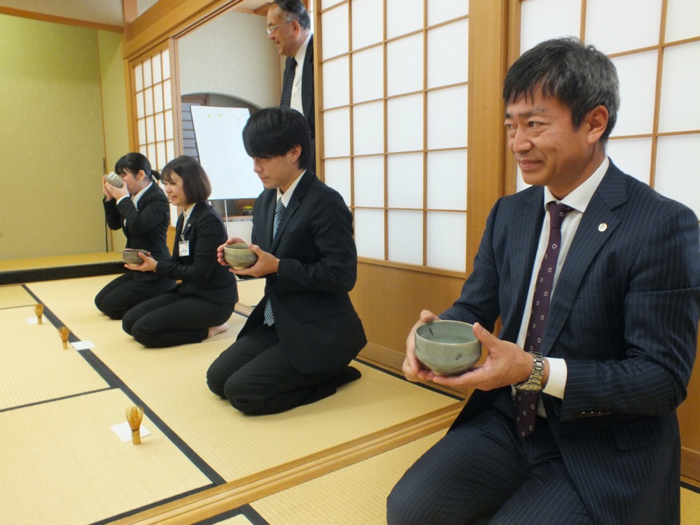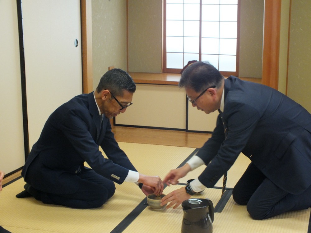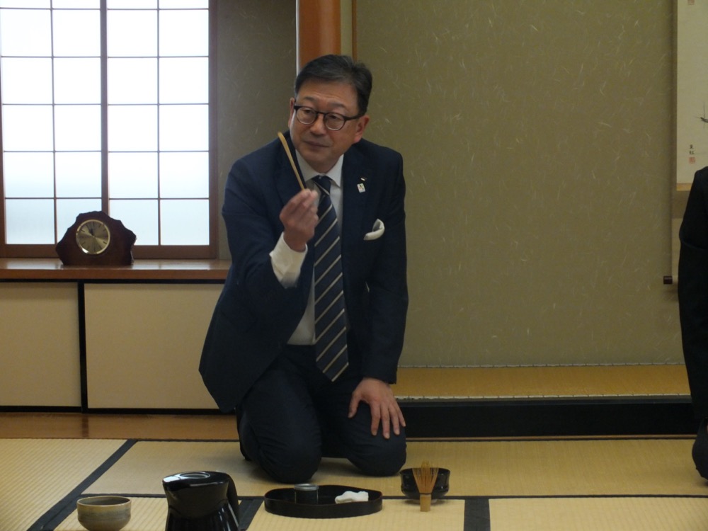 また知事への表敬訪問前に茶道体験会が実施されました。こちらには竹内専務理事もご参加されました。