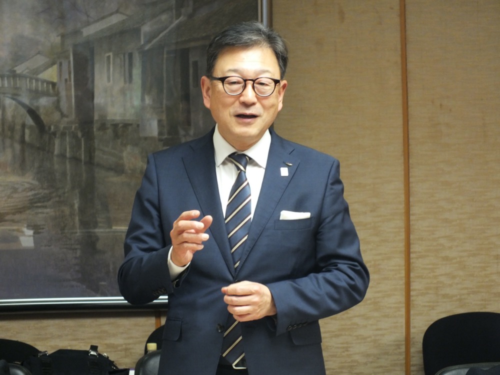 我々は、京都府内の経済人が中心となって組織する応援団体です。まず我々の会員は第一に皆さんの崇高な活動を理解するところから始めました。そして皆さんが日の丸をしょって何より京都から行かれるということで地域をしっかり持って行っていただこう『京都セット』を準備させていただいている。本日の知事表敬訪問前にはお茶会を開催し学んでいただいた。先日お亡くなりになられた千玄室さんは「一椀から世界平和」を願いながら各国を周られていた。そういうお茶の精神に触れていただいたのも良かったのではないかと思っています。